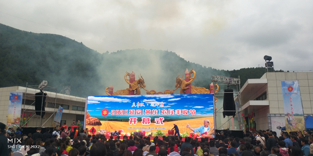 金秋送爽,五谷豐登,9月22日,2020年延安(黃龍)農民豐收節在黃龍縣“錦繡黃龍”生態旅游度假區盛大啟幕。陜西省農業農村廳黨組成員、省果業中心黨委書記高武斌,延安市副市長張強,延安市農業農村局局長王湛鴻,陜西省文聯副主席、陜西省作協副主席高建群,中共黃龍縣委書記王云祥,黃龍縣委副書記、縣長李富榮以及全體在家縣級領導等出席開幕儀式。