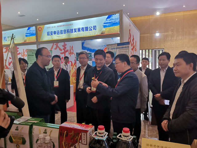 色澤鮮亮、誘人的農特產品不時吸引參觀者的目光,各展區前熱鬧非凡。值得一提的是,著名作家高建群老師也來到了展區現場為延安農特產品宣傳。