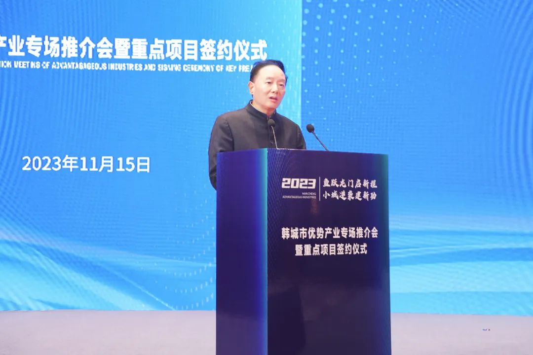 劉浩春在致辭中表示,蘇陜協作淵源流長,兩地干群接續奮斗、久久為功。在蘇陜兩省黨委政府關心支持下,蘇陜促進會是深化蘇陜協作、助力區域經濟社會高質量發展的服務聯絡橋梁、經濟協作紐帶、創新發展平臺,我們將以此次韓城市優勢產業專場推介會為契機,立足韓城資源稟賦,圍繞產業需求,充分發揮自身優勢與作用,積極引導會員企業走進韓城、領略韓城、感受韓城、投資韓城,通過供需對接、資源整合、機制共建等方式,為韓城市加快建設現代化產業體系注入源頭活水,推動縣域經濟高質量發展再上新臺階。